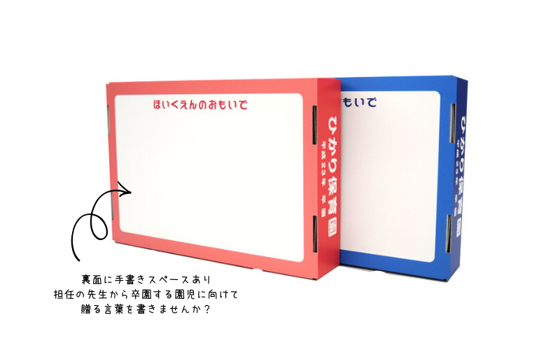 卒園式当日は、お子さん自身が作品を入れてそのまま持ち帰ることができます。